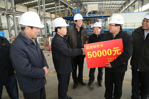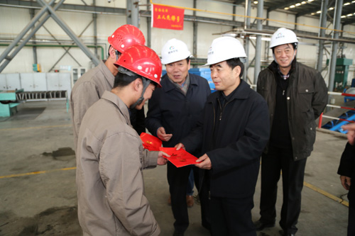 在羊年春節(jié)來臨之際,2月4日下午,省委常委、省政府常務(wù)副省長駱玉林來到青海聚能鈦業(yè)有限公司,親切慰問基建干部職工,把省委、省政府的關(guān)懷送到了企業(yè)生產(chǎn)一線。省政府副秘書長郭臻先,青海省經(jīng)濟(jì)和信息化委員會黨組書記、省國資委副主任、黨委副書記劉建青,省總工會副主席劉華芳等領(lǐng)導(dǎo)陪同慰問。