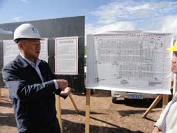 21日上午,王總經(jīng)理首先來到位于玉樹縣巴塘草原的金太陽2兆瓦水光互補發(fā)電站工地,詳細了解了項目設(shè)計內(nèi)容和現(xiàn)場布置方案,實地察看了